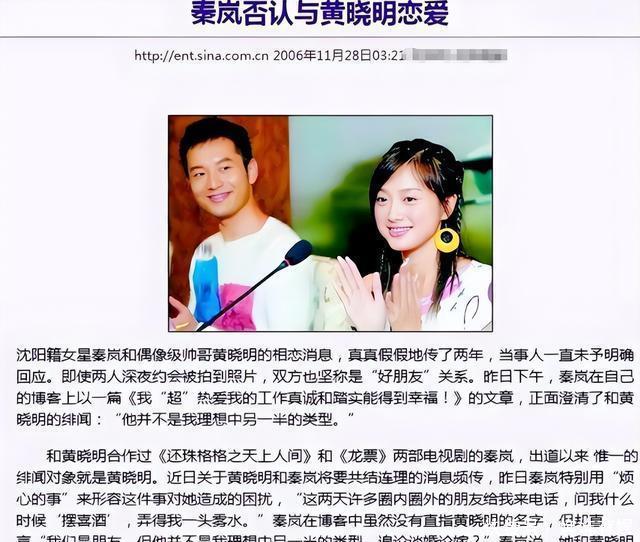 这几年在事业上她可以说是相当成功,她的感情生活也一直被网友热切关注着。 全网催婚 她早年和黄晓明还传过绯闻,但这段恋情并没有公开过,他们合作一部戏,非常般配,当时的媒体还只是猜测,两人一直说只是朋友。 直到两年后黄先生车祸,秦小姐不顾千万违约金赶去照料,这件事就此曝光,当时有很多媒体都报道了这件事,不过最后还是不了了之了。